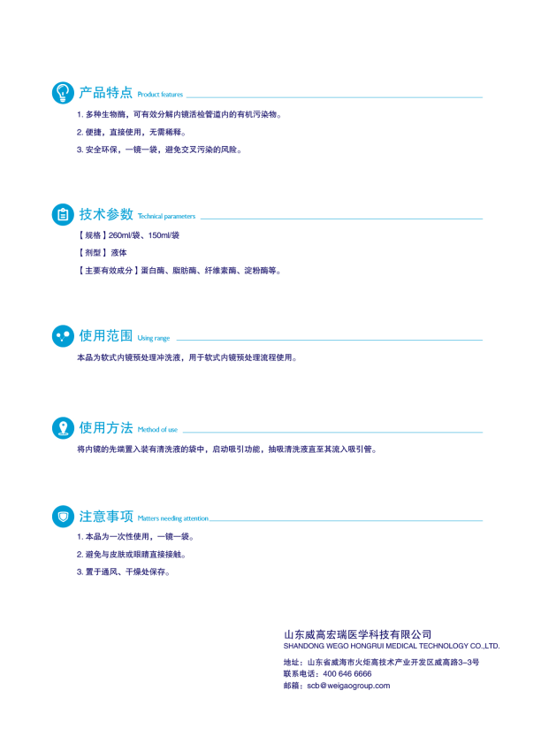 1、多種生物酶,可有效分解內(nèi)鏡活檢管道內(nèi)的有機(jī)污染物。2、便捷,直接使用,無(wú)需稀釋。3、安全環(huán)保,一鏡一袋,避免交叉污染的風(fēng)險(xiǎn)。