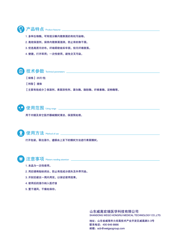 2、高效保濕劑,保持內鏡表面濕潤,防止有機物干涸。